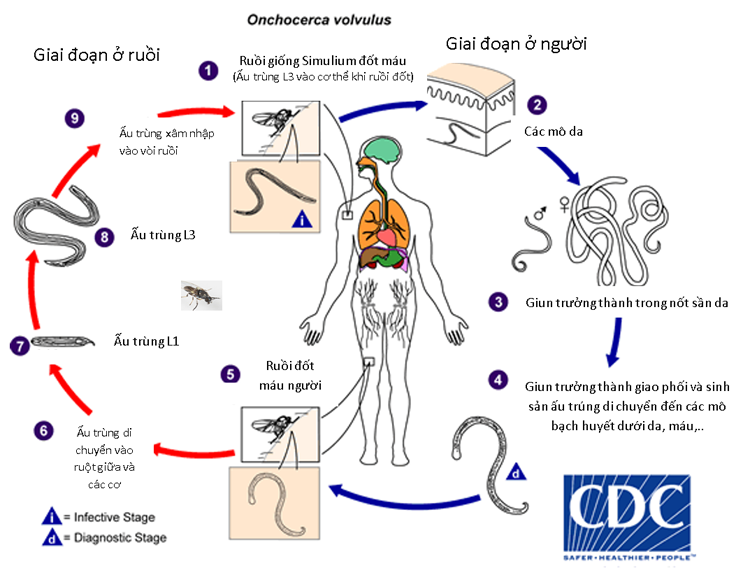 Hình 8. Vòng đời của giun chỉ Onchocerca volvulus(CDC Mỹ, 2020)