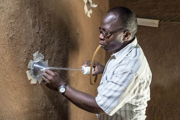 Thử tồn lưu hóa chất diệt côn trùng trên tường vách.WHO/AI. Torfinn