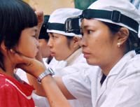 Trong số đó có nhiều trẻ dùng máy trợ thính cũng không thể nghe được. Khi bị điếc thường kéo theo hậu quả là trẻ bị câm, thành người khuyết tật. Đáng nói, ở thành thị trẻ điếc được phát hiện sớm hơn (trung bình khoảng 6 tháng tuổi) nhưng ở vùng nông thôn thì nhiều trẻ hơn 2 tuổi mới đi khám lần đầu tiên, thậm chí trẻ đã lớn, bị câm điếc, ngây ngô rồi mới đưa đi khám, hoặc không biết đi khám ở đâu.