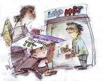 Năm nào cũng vậy, cứ vào khoảng tháng 4 trở đi là khoa tâm lý của các BV lại xuất hiện tình trạng bố mẹ đưa con đến khám để xin giấy chứng nhận nộp cho trường. Chị Trần Thị Mỹ Anh - trú tại quận Bình Thạnh cho biết: “Tôi có con 6 tuổi và học kỳ 1, 2 vừa rồi cô giáo đề nghị gia đình cho cháu đi khám về tâm thần do cháu học quá chậm so với các bạn trong lớp. Gia đình tôi theo chủ trương là không cho trẻ học trước khi vào lớp 1. Vì học trước đến khi vào lớp 1 thì cháu đã biết và sẽ lười học, không tập trung. Tuy nhiên, đến khi vào được trường thì tôi mới thấy hối hận vì đã không cho cháu học trước. Ngay từ đầu năm học, cô giáo đã cho các cháu kiểm tra phân loại trẻ nào đã biết đọc, biết đếm số, thậm chí biết cộng trừ. Nếu chưa biết gì cả thì sẽ bị loại vào danh sách “học chậm” hoặc có vấn đề về trí tuệ...”. Thạc sĩ tâm lý Kiều Thanh Hà - khoa Tâm lý BV Nhi Đồng 2 cho biết: “Nhiều phụ huynh đến khám nằng nặc đòi tôi phải cấp cho giấy chứng nhận là cháu bị khyết tật. Tôi không thể cấp được vì qua thăm khám thì cháu hoàn toàn bình thường”.