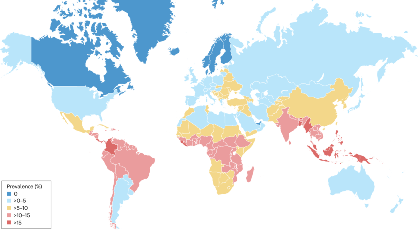 Hình 1. Tỷ lệ nhiễm giun lươn Strongyloides stercoralis trên toàn cầu |Nguồn: NTDs 2020