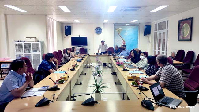 TS. Hồ Đắc Thoàn thay mặt Ban QLDA RAI3E của Viện báo cáo tình hình thực hiện các hoạt động Dự án RAI3E trong năm 2021 và 4 tháng đầu năm 2022. Kết quả cho thấy năm 2021 đã thực hiện 100% các hoạt động, tỉ lệ giải ngân đạt 83,7%, tỉ lệ học viên tham dự các lớp tập huấn đạt 84,4% (216/256). Đến ngày 15/6/2022, Viện đã thực hiện các hoạt động đạt 50%, tổ chức 9/12 lớp tập huấn, số học viên tham dự đạt 97,2% (240/247). Các nội dung hoạt động được thực hiện đúng theo các quy định về chuyên môn, tài chính và kế hoạch đề ra. Kết quả đánh giá về chứng từ thanh toán của LFA là tốt.