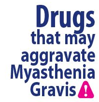 Một lưu ý quan trọng đối với bệnh nhân và thầy thuốc là trong điều trị cần tránh dùng các thuốc làm nặng tình trạng nhược cơ như thuốc kháng sinh nhóm aminoglycosid ví dụ gentamycin, amikacin. Các thuốc kháng cholinesterase có tác dụng làm giảm triệu chứng mà không ảnh hưởng đến diễn biến của bệnh như: neostigmin, pyridostigmin hoặc có thể dùng cả hai. Liều lượng tùy thuộc tình trạng bệnh nhân. Trường hợp quá liều có thể làm tăng nhất thời triệu chứng yếu cơ, xử trí bằng cách dùng edrophonium tiêm tĩnh mạch có thể đáp ứng.