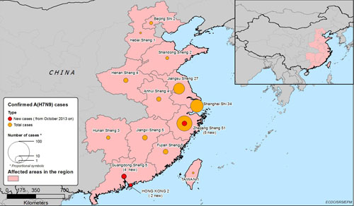 Theo Trung tâm Phòng chống và Kiểm soát bệnh tật châu Âu cho biết, vào tháng 5 năm 2013, chuyên gia Trung Quốc cho biết họ đã xác định một chủng virus cúm mới có tên là virus cúm A (H7N9) ở các bệnh nhân sống khu vực phía đông Trung Quốc. Kể từ đó số ca mắc cúm A (H7N9) tiếp tục gia tăng và đến ngày 19 tháng 12 năm 2013, Trung Quốc ghi nhận có tất cả 147 ca đã xác định dương tính trong phòng thí nghiệm xảy ra ở các tỉnh gồm Chiết Giang (51 ca), Thượng Hải (34 ca), Giang Tô (27 ca), Phúc Kiến (5 ca), Quảng Đông (6 ca), Giang Tây (5 ca), Hà Nam (4 ca), An Huy (4 ca), Hồ Nam (3 ca), Bắc Kinh (2 ca), Sơn Đông (2 ca), Hồng Kông (2 ca), Hà Bắc (1 ca) và Đài Loan (1 ca).