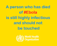 (A person who has died of Ebola is still highly infectious and should not be touched.)