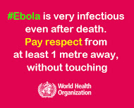 (Ebola is very infectious, even after death. Pay respect from at least 1 metre away, without touching)