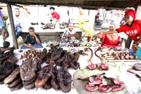 | Người đi bộ gần thịt rừng khô gần đường cao tốc Yamoussoukro ở Bờ Biển Ngà vào ngày 29/3/2014 |