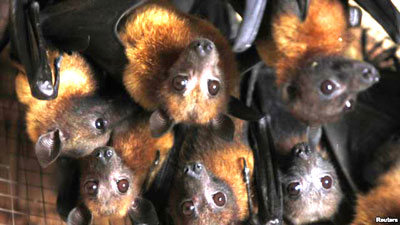 | Dơi quạ đầu xám, một loài dơi ăn quả được chụp trong một ngôi nhà ở ngoại ô Bangkok, Thái Lan. |