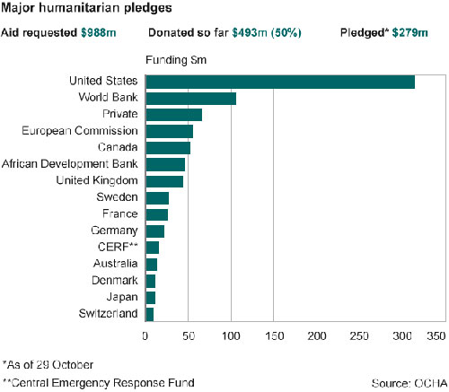 Biểu đồ đánh giá mức tài trợ của các quốc gia và tổ chức trong cuộc chiến chống lại Ebola