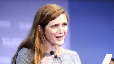 | Đại sứ Hoa Kỳ tại Liên Hiệp Quốc Samantha Power phát biểu trong Diễn đàn Xã hội Dân sự là một phần của Hội nghị Thượng đỉnh Hoa Kỳ Châu Phi 2014 tại Washington, ngày 04/08/2014 |