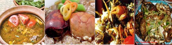 - Nấu canh cua: cua được tách ra, vặt hết các chân rồi kho với đậu phụng. Món ăn rất bùi, ngon mà không ngán. Cua nấu canh thì dùng cái cối đá giã nhuyễn rồi lóng lấy gạch cua nấu canh;
