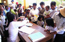 Phát thuốc cho đồng bào trong Dự án "Loại trừ giun chỉ bạch huyết" |