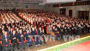 Các đồng chí lãnh đạo Đảng, Nhà nước và đông đảo nhân dân Thủ đô tham dự lễ kỷ niệm. Ảnh: Đinh Xuân Tuân-TTXVN |