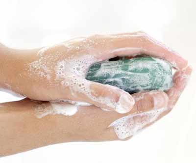 Cần rửa tay thật kỹ trước khi chế biến, nấu nướng thức ăn hoặc sau mỗi lần tạm ngừng công việc cho việc sinh hoạt khác, đặc biệt là sau khi thay quần áo hoặc sau khi đi tiểu tiện, đại tiện. Sau khi chặt, cắt hay rửa các thực phẩm sống như thịt, cá... cần phải rửa tay thật kỹ trước khi chế biến những thức ăn khác. Nếu tay bị nhiễm trùng như có mụn nhọt, phải băng kỹ vết thương, mang găng tay trước khi tiếp xúc với thực phẩm để chế biến, nấu nướng.