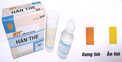 Kỹ thuật tiến hành bằng cách lấy một que thử trong ống đựng giấy thử. Cắt đầu lọ dung dịch đệm, nhỏ 1 giọt lên phần giấy đối chứng ở giữa que thử sao cho phần giấy đủ thấm ướt đều. Nhúng ngập phần giấy thử phía dưới vào cốc mẫu vừa xử lý. Lấy thẻ que thử lên, vẩy khô bớt dịch, đặt trên mặt phẳng và chờ đọc kết quả. Kết quả dương tính nếu giấy thử phía dưới chuyển màu, từ màu vàng tươi sang màu đỏ nâu, khác với giấy thử phía trên. Kết quả âm tính nếu cả 2 phần giấy thử vẫn có màu giống nhau. Cần chú ý chỉ nhúng phần dưới của giấy thử vào mẫu. Cường độ màu của giấy thử phụ thuộc vào lượng hàn theo trong mẫu. Nếu lượng hàn the trong mẫu thấp khoảng 50mg/kg thì đọc kết quả sau 30 phút.