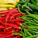 2. Ớt đỏ và ớt xanh Theo kết quả nghiên cứu, có hơn 50 hóa chất trong đó có 10 chất organophosphates khác nhau đã được sử dụng trên cây ớt chuông. Loại ớt này có chứa lượng thuốc trừ sâu trong suốt trong chu kỳ tăng trưởng của mình cũng như được sử dụng để phun khi diệt cỏ, diệt nấm... Thông thường người trồng ớt chuông thường phun methyl bromide trước khi trồng để diệt cỏ dại và côn trùng. Ớt cũng có thể có được phun một liều Gramoxone Extra - một loại thuốc trừ sâu có độc tính cao hơn nhiều các thuốc diệt cỏ khác. | |