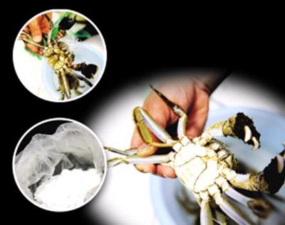 Theo một chuyên gia trong ngành thủy sản Trung Quốc, thứ bột tẩy trắng cua đồng mà các tiểu thương sử dụng là loại hóa chất công nghiệp mà khá nhiều người dùng để rửa, tẩy trắng tôm. Tuy nhiên so với thứ bột dùng rửa tôm hùm non, loại tôm hùm gây chứng tan cơ hoành ở người ăn vốn gây xôn xao dư luận thời gian qua thì bột tẩy cua này còn độc hại hơn nhiều.