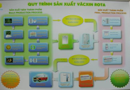 Trung tâm Nghiên cứu, sản xuất vaccin và sinh phẩm y tế - Bộ Y tế đã nghiên cứu và sản xuất thành công vaccin rota với chất lượng tương đương vaccin ngoại nhưng có giá thành hạ so với nhập từ nước ngoài (giá một liều nhập là 700.000 đồng). Theo PGS.TS. Lê Thị Luân, PGĐ Trung tâm Nghiên cứu, sản xuất vaccin và sinh phẩm y tế, sản phẩm đã được Trung tâm Kiểm soát và phòng ngừa dịch bệnh Hoa Kỳ (CDC) kiểm tra và Viện Kiểm định quốc gia vaccin và sinh phẩm VN (NICVB) phê chuẩn, cho sử dụng trên thực địa lâm sàng. Hiện sản phẩm đã được thử nghiệm lâm sàng trên 30 người lớn, 1.000 trẻ em từ 6 - 12 tuần tuổi tại Thanh Sơn (Phú Thọ) và TP. Thái Bình. Kết quả cho thấy vaccin an toàn trên cả người lớn và trẻ từ 6 - 12 tuần tuổi; đáp ứng miễn dịch rất tốt…