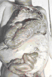 Sau khi nhập viện, cậu bé đã biểu hiện táo bón nặng và giải thích rằng cậu bé mỗi tuần chỉ đại tiện một lần. Kết quả xét nghiệm lúc nhập viện, kể cả huyết thanh natriuretic peptide não và nhìn chung các chỉ số đều trong phạm vi cho phép. Tuy nhiên khi chụp X quang ở phần bụng cho thấy sự căng phồng ở đại tràng chính và kéo dài 65 mm.