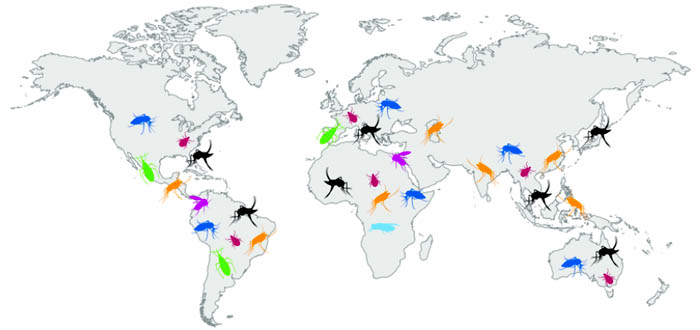 Hình 1. Phân bố toàn cầu về các bệnh do véc tơ truyền quan trọng và véc tơ liên quan.