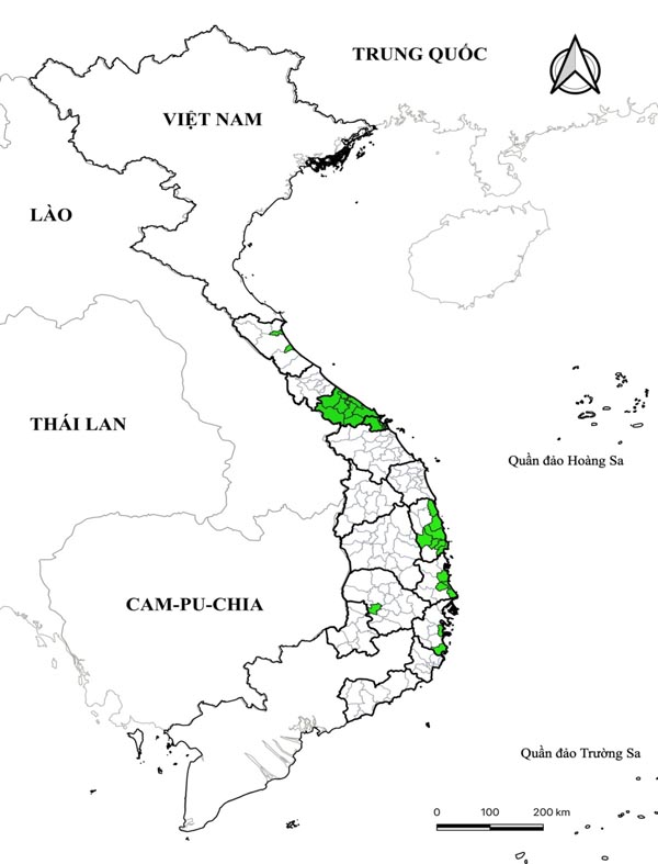 Hình 4. Phân bố LTSR tuyến huyện tại khu vực miền Trung-Tây Nguyên