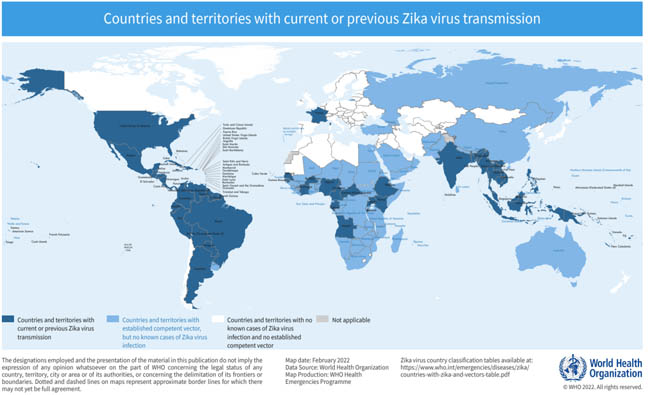 Hình 9. Thực trạng lan truyền virus Zika trên thế giới (WHO, 2022)
