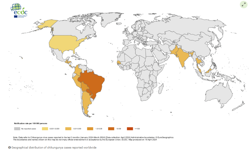 Hình10. Phân bố tỷ lệ mắc trên 100.000 dân từ tháng 1 đến 3 năm 2024(Nguồn: ECDC)
