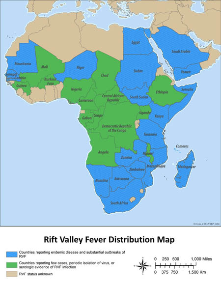 Hình 15. Bản đồ phân bố bệnh sốt thung lũng Rift (CDC)