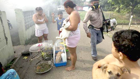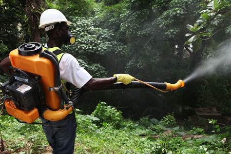 Nhân viên y tế đang phun hóa chất diệt muỗi gây dịch chikungunya