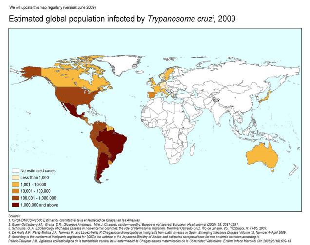 Ngoài ra, phần lớn các trường hợp nhiễm ở các quốc gia không lưu hành là do những người nhập cư từ khu vực Mỹ Latinh, những người này thường có rất ít cơ hội để tiếp cận các dịch vụ chăm sóc sức khỏe và rất khó để theo dõi chính xác.