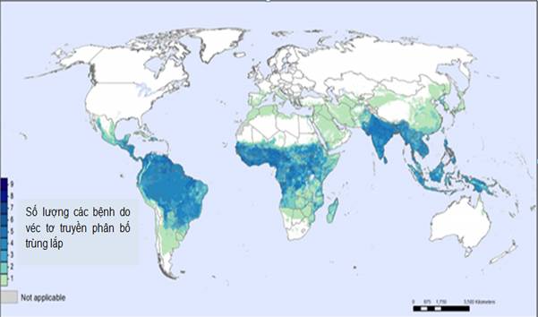 Phân bố trùng lắp 9 bệnh do véc tơ truyền chính trên toàn cầu (Nguồn: WHO)