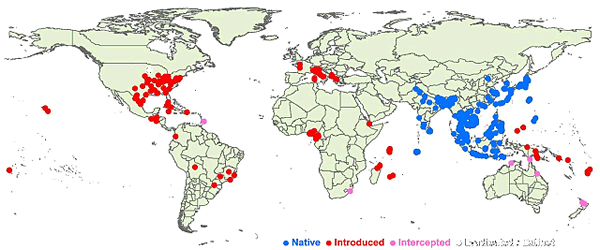 Bản đồ phần bố muỗi Aedes (Stegomyia) albopictus |