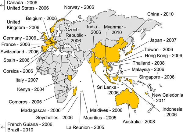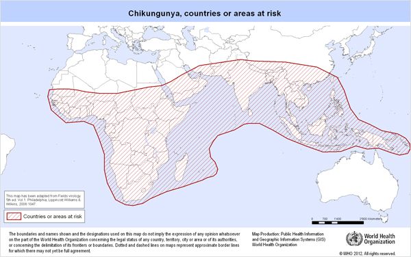 Chikungunya đã được xác định ở gần 40 quốc gia thuộc châu Á, châu Phi, châu Âu và cả ở châu Mỹ.