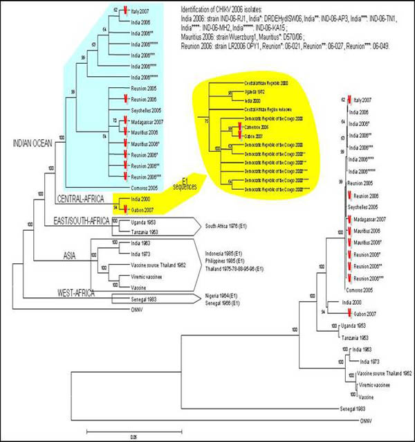 58.Cherian SS, Walimbe AM, Jadhav SM, et al. (January 2009). "Evolutionary rates and timescale comparison of Chikungunya viruses inferred from the whole genome/E1 gene with special reference to the 2005-07 outbreak in the Indian subcontinent". Infect. Genet. Evol. 9 (1): 16–23.