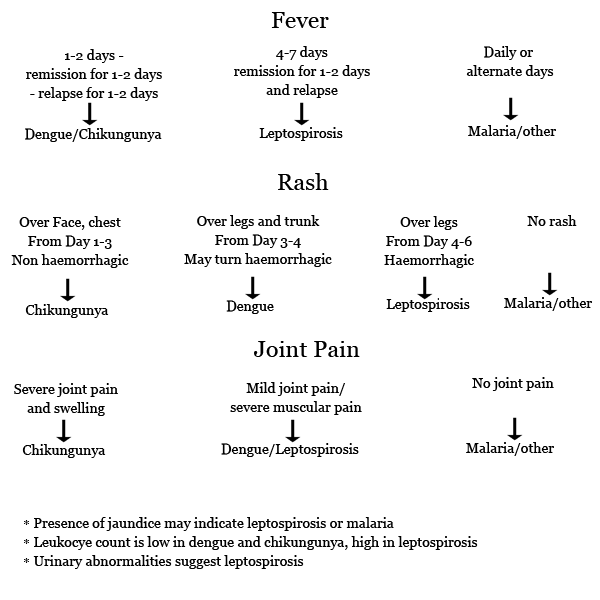 ·  !important; Bệnh có một số dấu hiệu lâm sàng giống với bệnh sốt xuất huyết, vì vậy có thể bị chẩn đoán nhầm ở những nơi có bệnh sốt xuất huyết lưu hành phổ biến đồng thời;