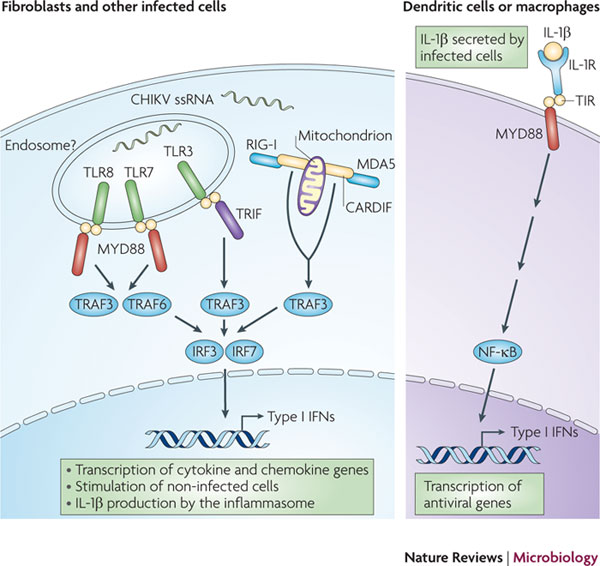 29.Schilte, C; Couderc, T; Chretien, F; Sourisseau, M; Gangneux, N; Guivel-Benhassine, F; Kraxner, A; Tschopp, J; Higgs, S; Michault, A; Arenzana-Seisdedos, F; Colonna, M; Peduto, L; Schwartz, O; Lecuit, M; Albert, ML (2010). "Type I IFN controls chikungunya virus via its action on nonhematopoietic cells.". The Journal of experimental medicine 207 (2): 429–42.