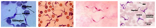 Trong bài viết, chúng tôi có một số thuật ngữ chuyên ngành ký sinh trùng, đặc biệt về Trypanosoma spp, giữ nguyên (tạm không dịch) và chi sẻ với quý bạn đồng nghiệp một số hình ảnh trong Atlas ảnh Trypanosoma spp gây bệnh qua nhuộm giêm sa và chụp dưới kính hiển vi điện tử trích từ internet.