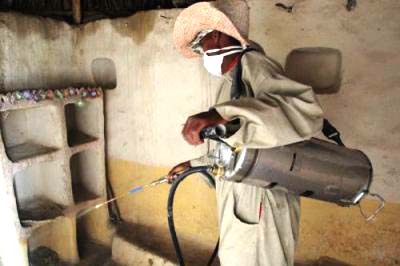 Phun tồn lưu hoá chất diệt muỗi lên tường vách. (ảnh st) |