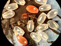 Hình ảnh trứng và bọ xít con ở phòng thí nghiệm của .Trung tâm phòng chống sốt rét, ký sinh trùng, côn trùng tỉnh Thừa Thiên - Huế. (Ảnh chụp cận cảnh của phòng thí nghiệm) |