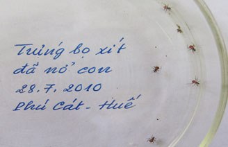 Cũng mới đây, Phòng thí nghiệm của Trung tâm Phòng chống sốt rét, ký sinh trùng, côn trùng tỉnh Thừa Thiên Huế đã nuôi hơn chục quả trứng và khoảng 10 ngày sau đã nở ra con.