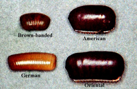 Gián Mỹ (Periplanete americana) | Gián có băng vàng, nâu (Supella longipalpa) |