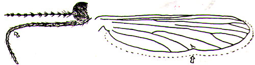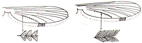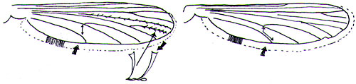 - Trên gân cánh không có vẩy hình đĩa, gân L6 quá chỗ chia nhánh của gân L5.