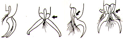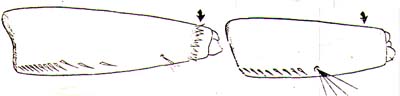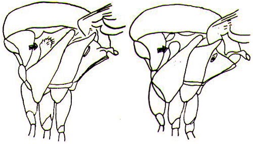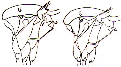 - Nửa vòi ngòai không cong xuống, bờ ngòai cánh không lõm vào ở gần đầu gân L5-2.