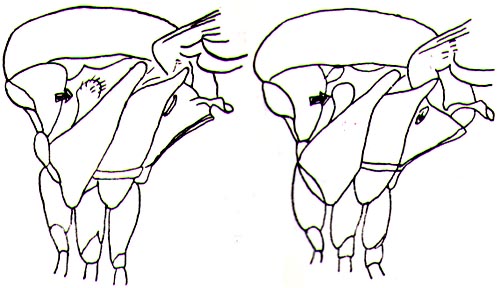 - Chiều dài đốt 1 bàn chân trước và chân giữa ngắn hơn chiều dài từ đốt 2 đến đốt 5