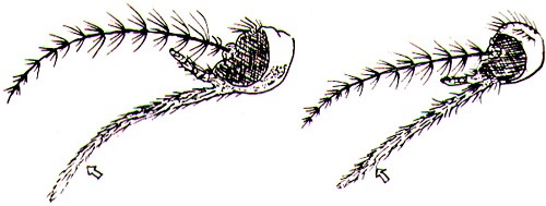 - Các răng lược siphon không phân bố đến gần đỉnh, chùm lông siphon nằm ngòai khỏang lược siphon.