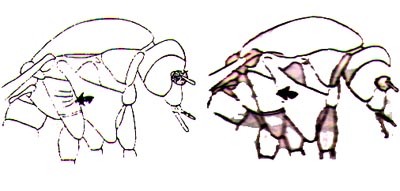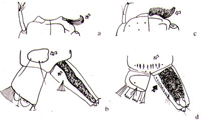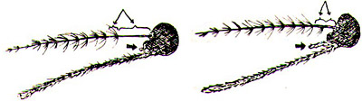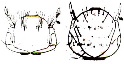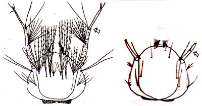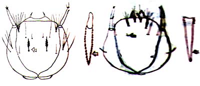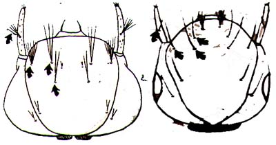 - Các lông đầu trên, dưới, lông trước anten và lông anten đơn.