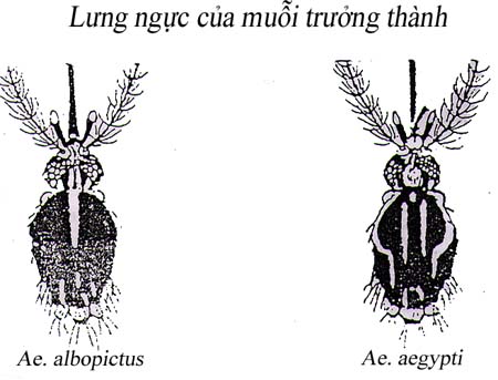 + Mesonotum có vẩy màu trắng xếp thành hình đàn ...... Ae. aegypti.