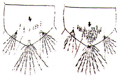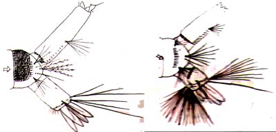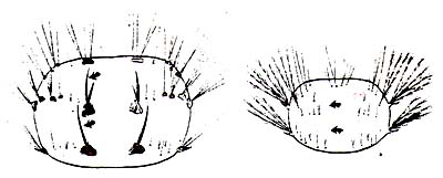 + Răng lược đốt bụng VIII có gai giữa và gai bên........ Ae. aegypti