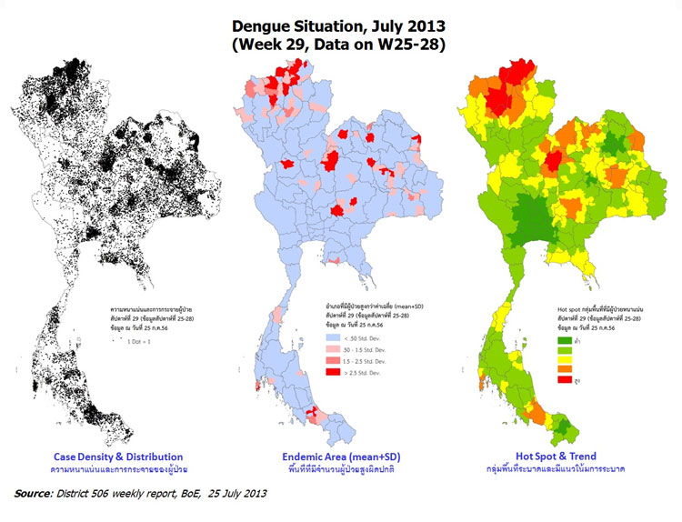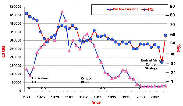 Dựa vào các hoạt động giám sát sốt rét được ghi nhận ở Thái lan từ năm 1971-2011, đỉnh mắc sốt rét xảy ra vào năm 1981 với tổng số ca mắc là 473.210 ca mắc và sau đó số ca mắc đã giảm mặc dù có sự gia tăng số ca mắc vào năm 1988 (349,291 ca mắc).
