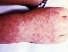 Rận truyền bệnh sốt phát ban. | Tổn thương ban ở tay do R.prowazekii. |